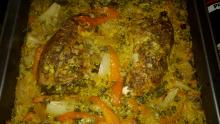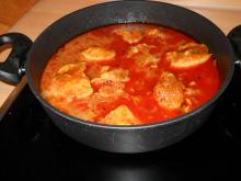 1 theelepel chilipoeder. Maak van 1 kippenbouillonblokje ongeveer 400-500 ml kippenbouillon. Draai het vuur laag en stoof de kip 15 minuten.